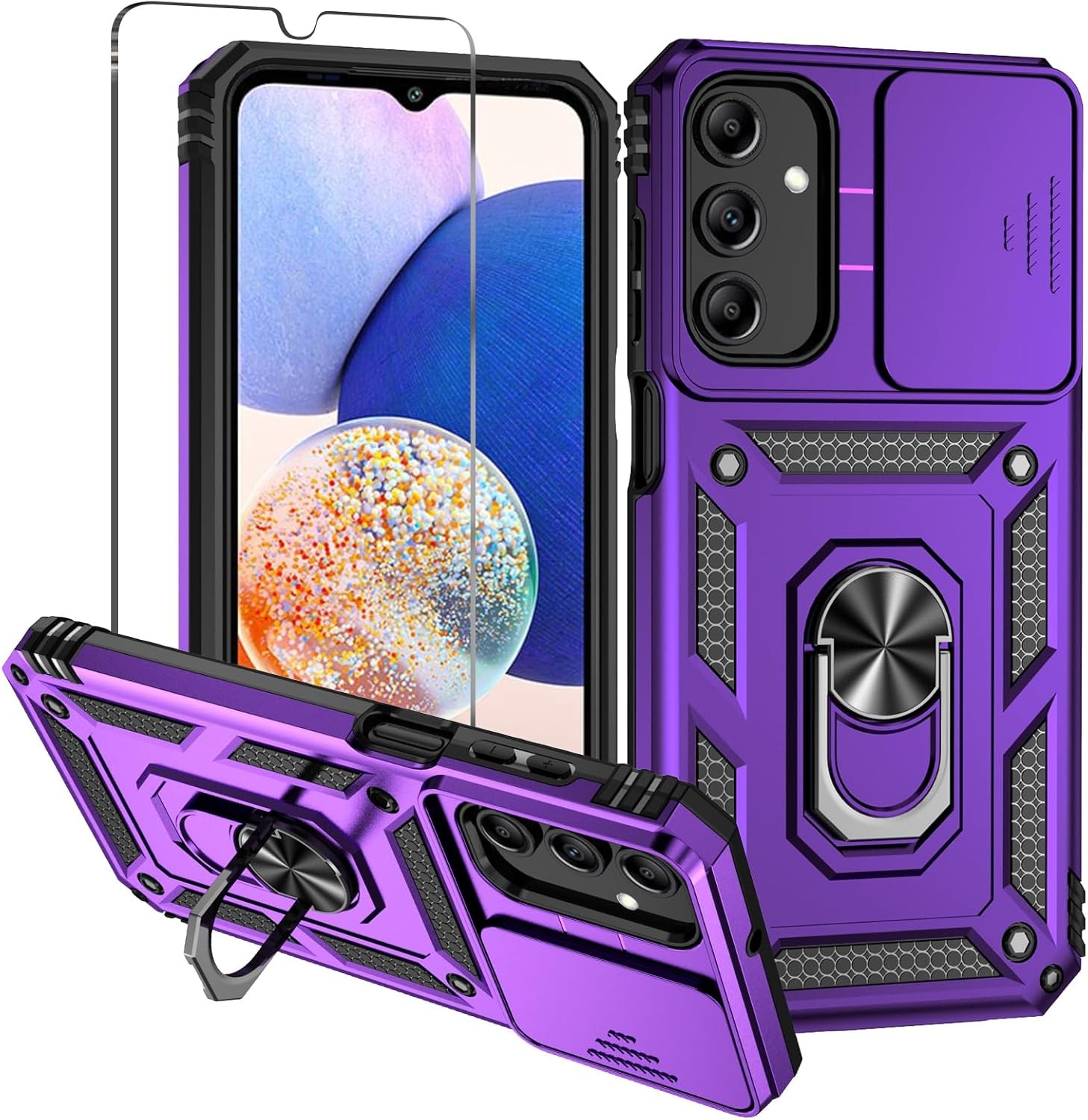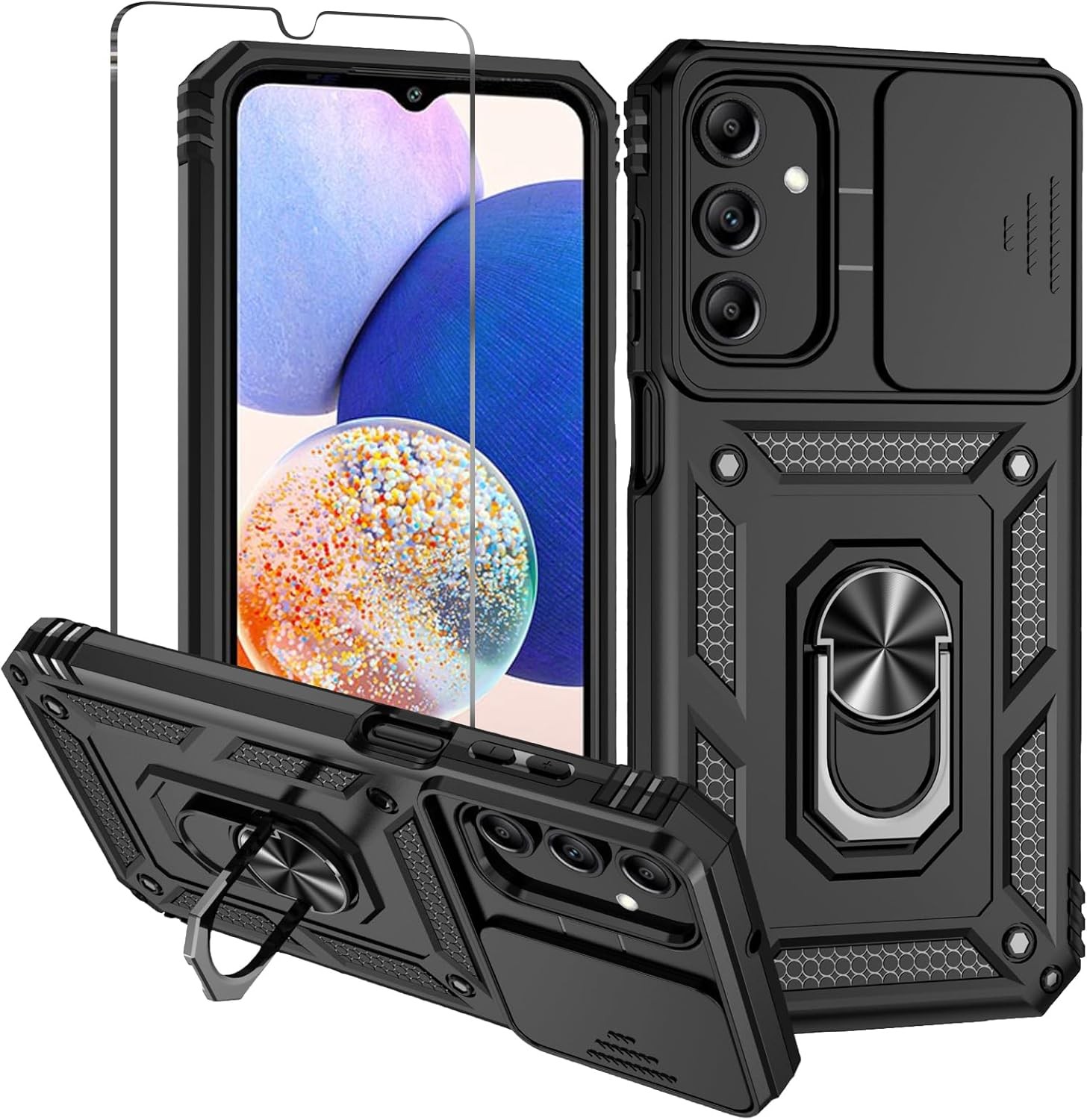 for Samsung A16 Phone Case: with Slide Camera Cover Rotatable Kickstand Militar
