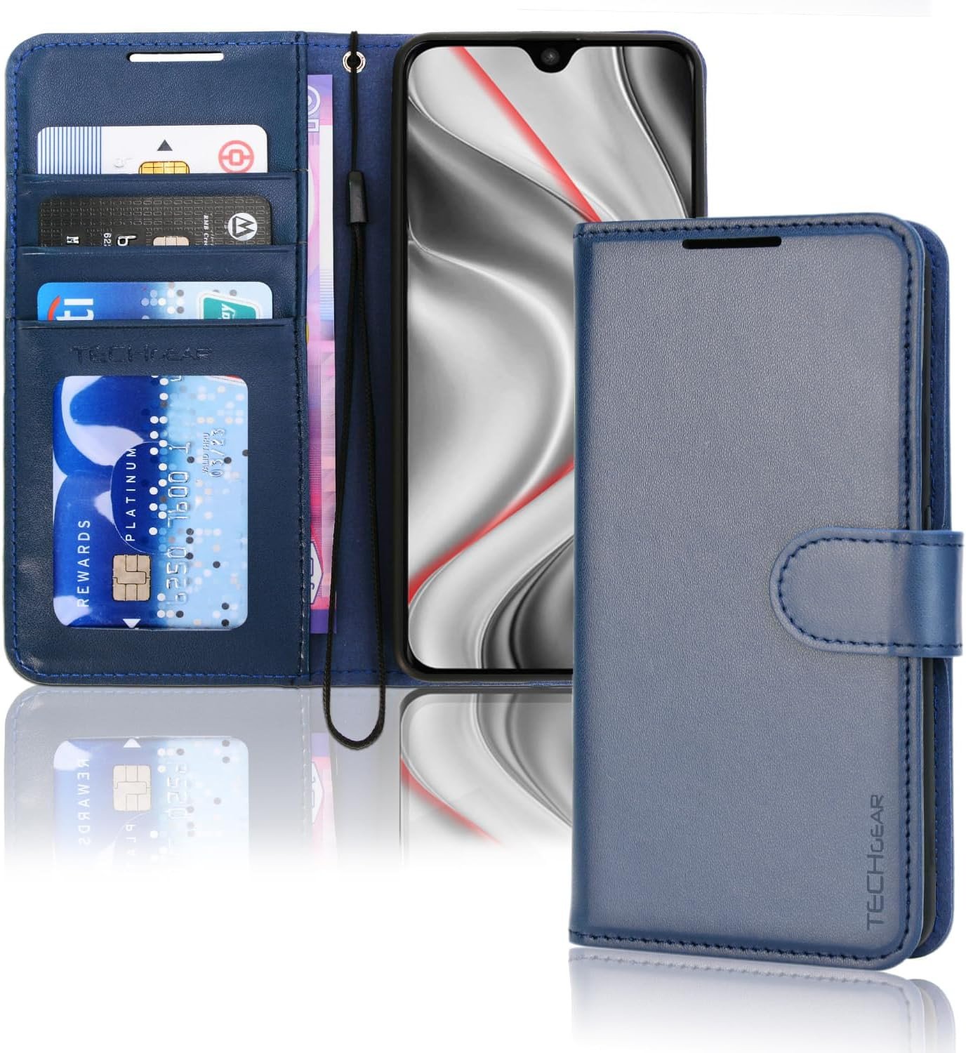 TECHGEAR for Samsung Galaxy A16 Phone Case, PU Leather Wallet Case Cover [RFID BLOCKING] Card Holder, Stand, Wrist Strap, Magnetic Closure, Shockproof Protection For Samsung A16 5G / A16 4G - Blue