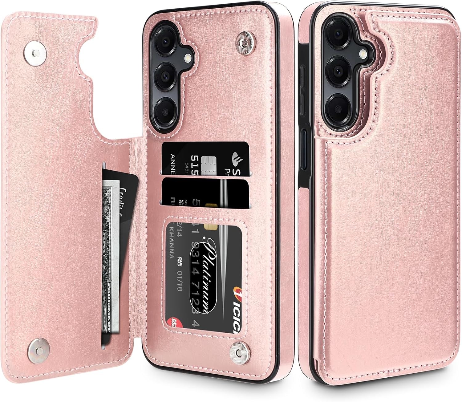 TECHGEAR for Samsung Galaxy A16 Phone Case, PU Leather Wallet Case Cover [RFID BLOCKING] Card Holder, Stand, Wrist Strap, Magnetic Closure, Shockproof Protection For Samsung A16 5G / A16 4G, Rose Gold