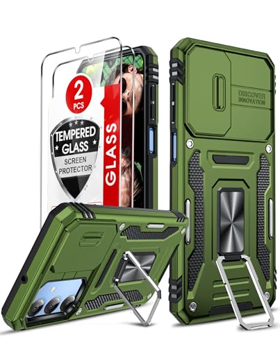 LeYi for Samsung Galaxy A16 Phone Case, with Camera Lens Cover Slider, 2 Pack Screen Protectors, Ring Stand Holder Military Grade Protective Shockproof Armour Cover for Samsung Galaxy A16, Green
