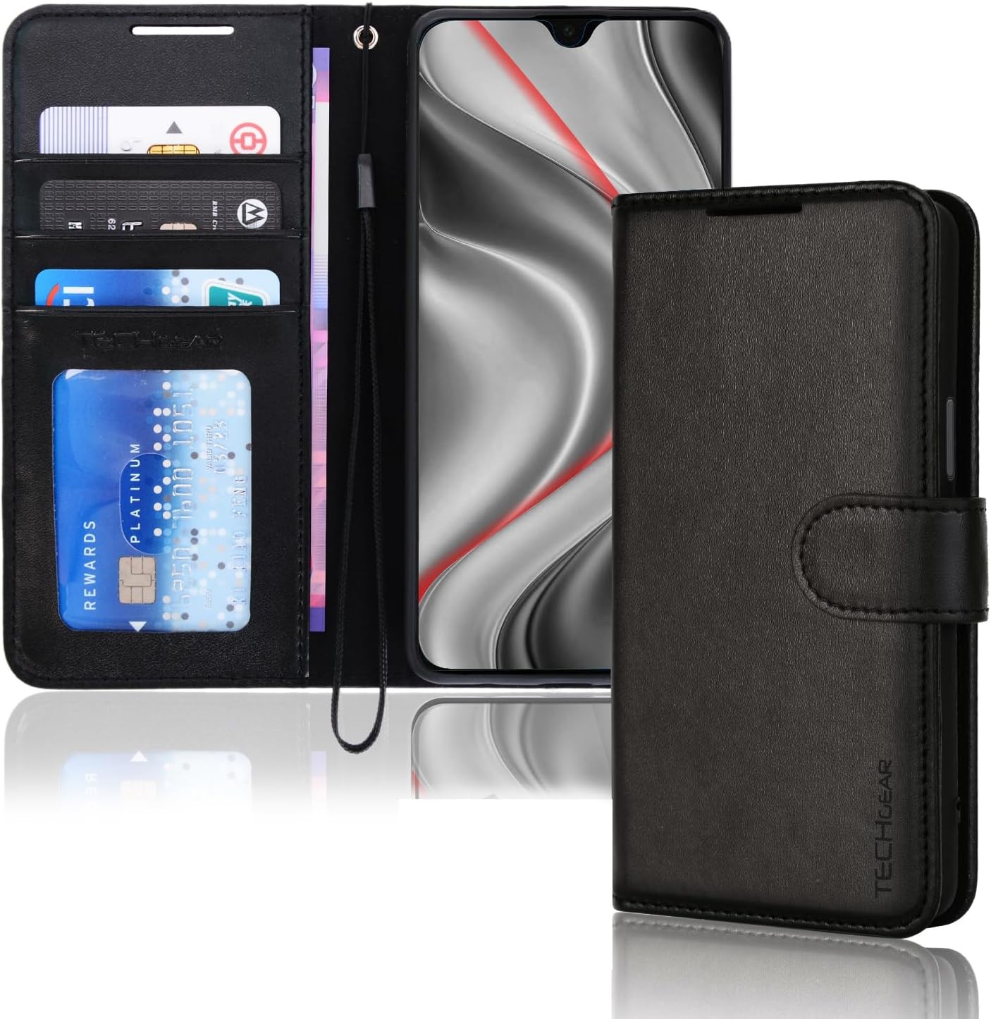 TECHGEAR for Samsung Galaxy A16 Phone Case, PU Leather Wallet Case Cover [RFID BLOCKING] Card Holder, Stand, Wrist Strap, Magnetic Closure, Shockproof Protection For Samsung A16 5G / A16 4G - Black