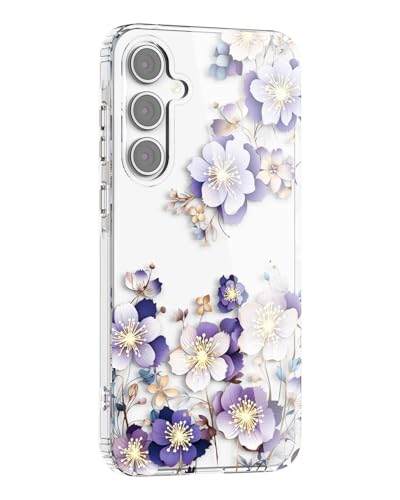 GOTOURED Floral Clear for Samsung A16 Phone Case, Stylish Flower Pattern Cover, Shockproof Military Grade Protection, Cute Slim & Lightweight for Galaxy A16 Case (Purple)
