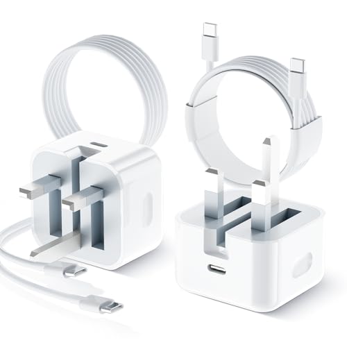 25W iPad USB‑C Charger Plug UK, 2Pack with 2x2m Cable, Fast Charger for iPad Pro (2018‑2025), iPad Air 4/5/M3, iPad Mini 6/7, iPad 10/11th (A16), iPhone 15/16/17, Samsung & More USB‑C UK Power Adapter