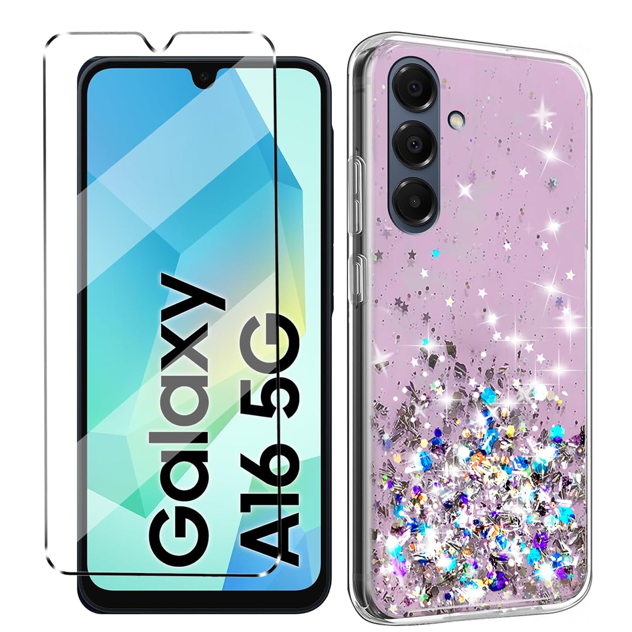 Glitter Bling Case Cover Compatible with Samsung Galaxy A16 Phone Case with 1 Pack Tempered Glass Screen Protector Phone Case,Soft TPU Slim Fit