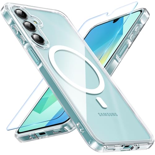OWKEY Magnetic Clear Case for Samsung A16 Phone Case with Screen Protector,Anti-Yellowing and Scratches,Shockproof Hard PC Back Cover for Samsung Galaxy A16 5G/4G,Transparent