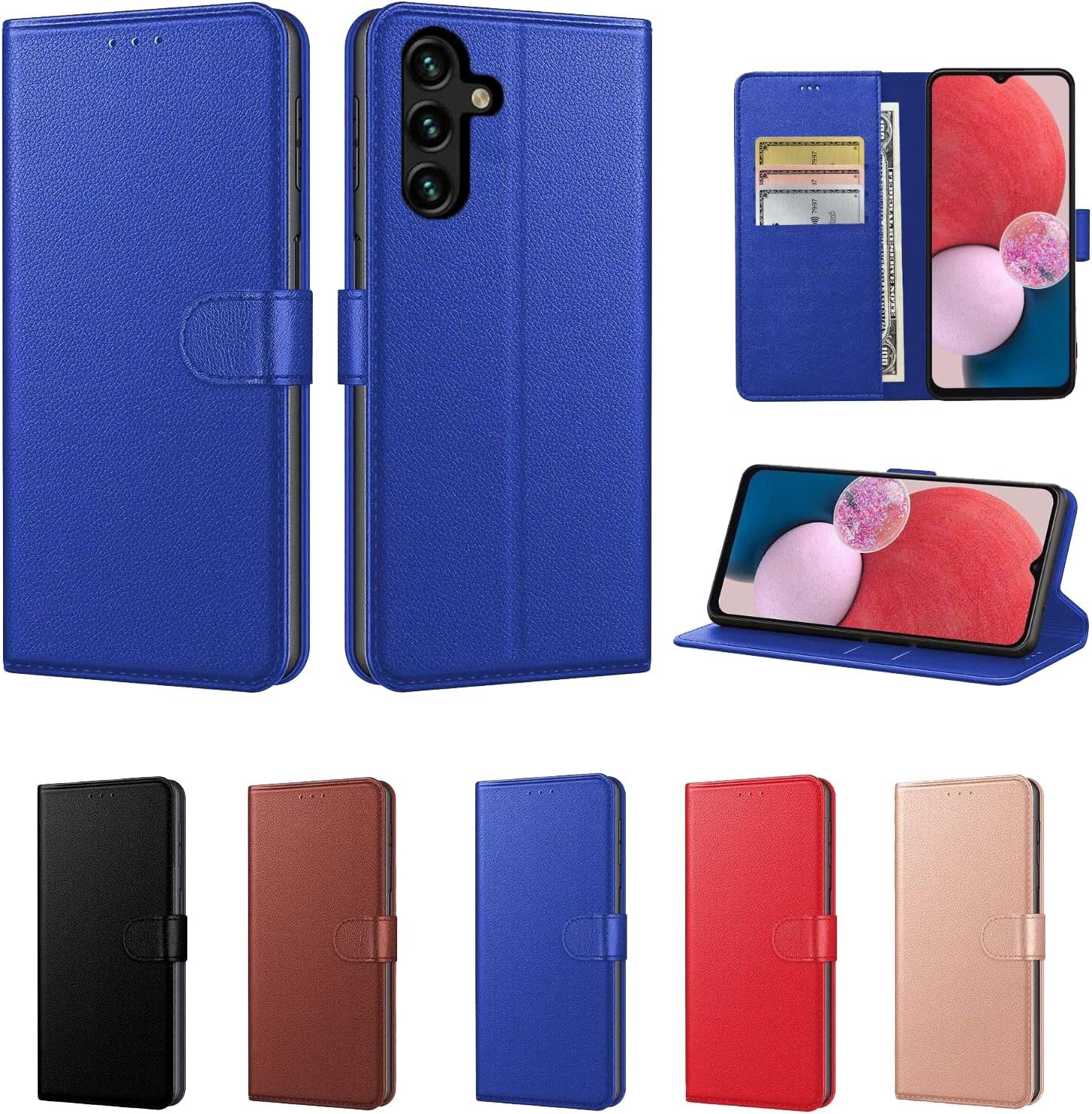 (Blue) Compatible with Samsung A16 phone case, RFID Blocking Pu Leather Folio Flip Case