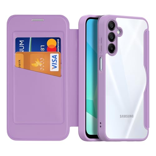 DUX DUCIS for Samsung Galaxy A16 Phone Case, Premium Flip Leather Card Slots with RFID Blocking Clear Shockproof Protective Cover for Samsung Galaxy A16 4G/5G Case (Purple Pink)