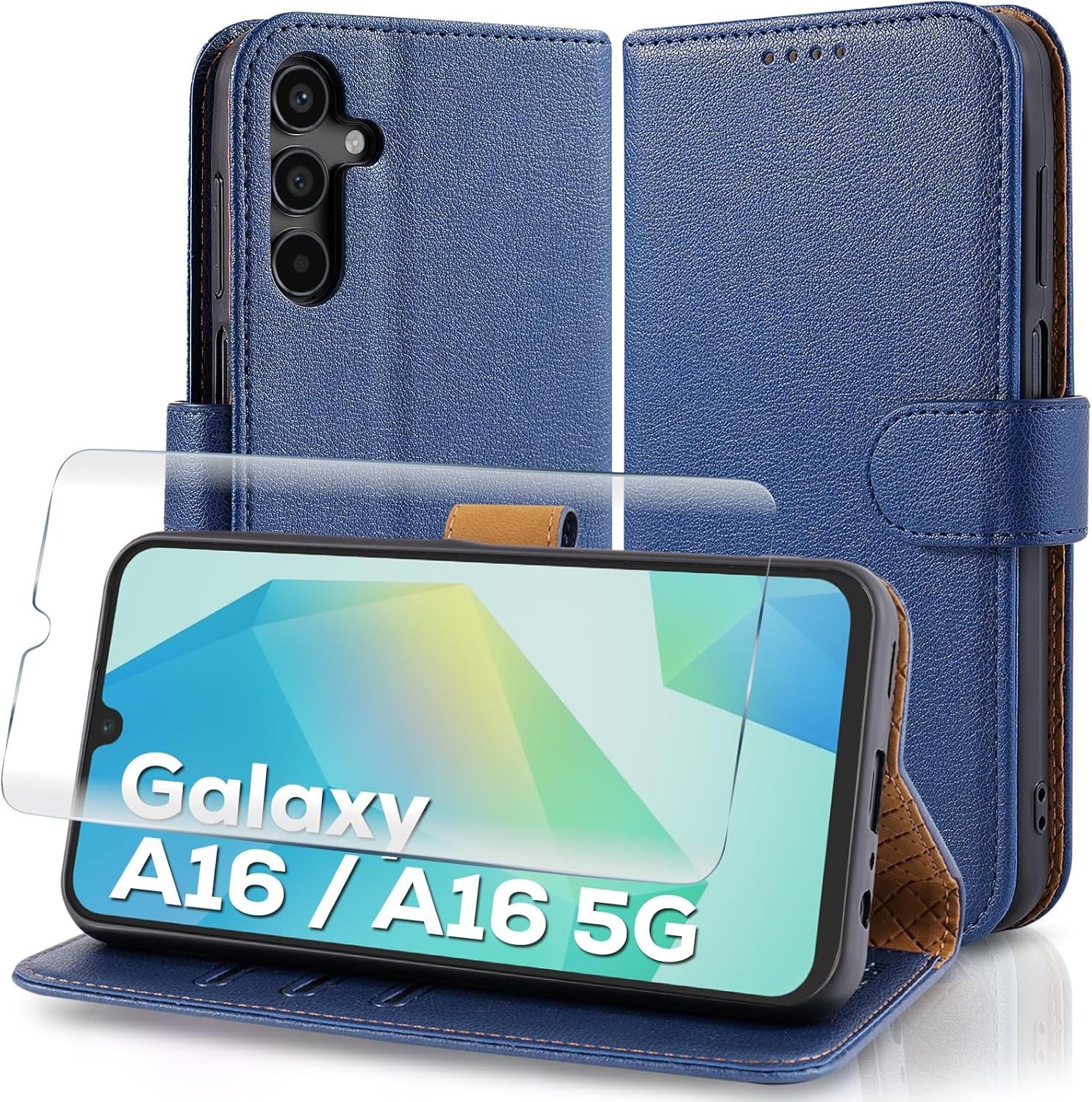 Case Collection for Samsung A16 Phone Case and Screen Protector - Leather Folio