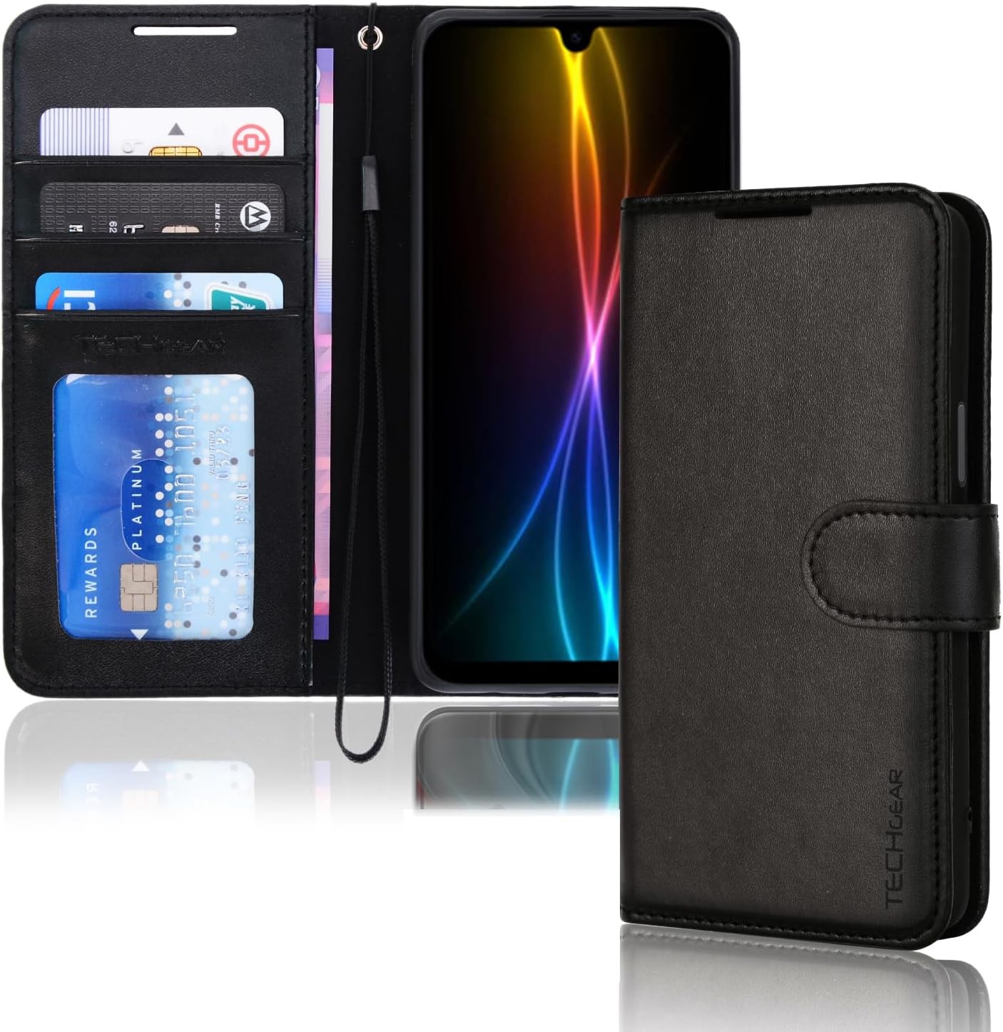 TECHGEAR for Samsung Galaxy A16 Phone Case, PU Leather Wallet Case Black