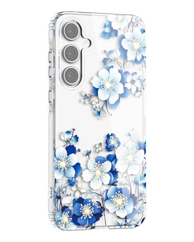 GOTOURED Floral Clear for Samsung A16 Phone Case, Stylish Flower Pattern Cover, Shockproof Military Grade Protection, Cute Slim & Lightweight for Galaxy A16 Case (Blue)