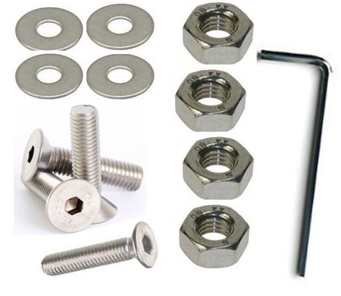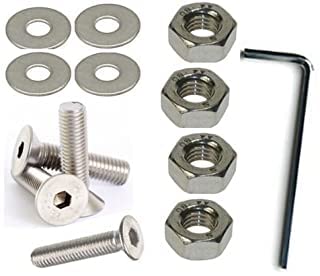 AHC 8mm Countersunk Bolts M8 x 55mm (Including Head) A2 Stainless Steel Socket/Allen Head Csk Bolt/Screws (4 Pack) Free Washers Nuts and Hex Key