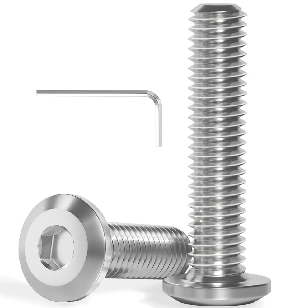 Wavanta M8 Bolts, M8 x 16mm Flat Head Hex Socket Cap Screws Bolts, Full Thread A2 304 Stainless Steel Screws with Hex Key, Ideal for Furniture Assemb