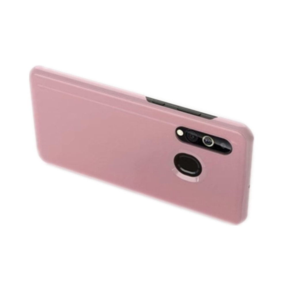 Electroplating Mirror Horizontal Flip Leather Case for Samsung A20 E with Holder(Rose gold)