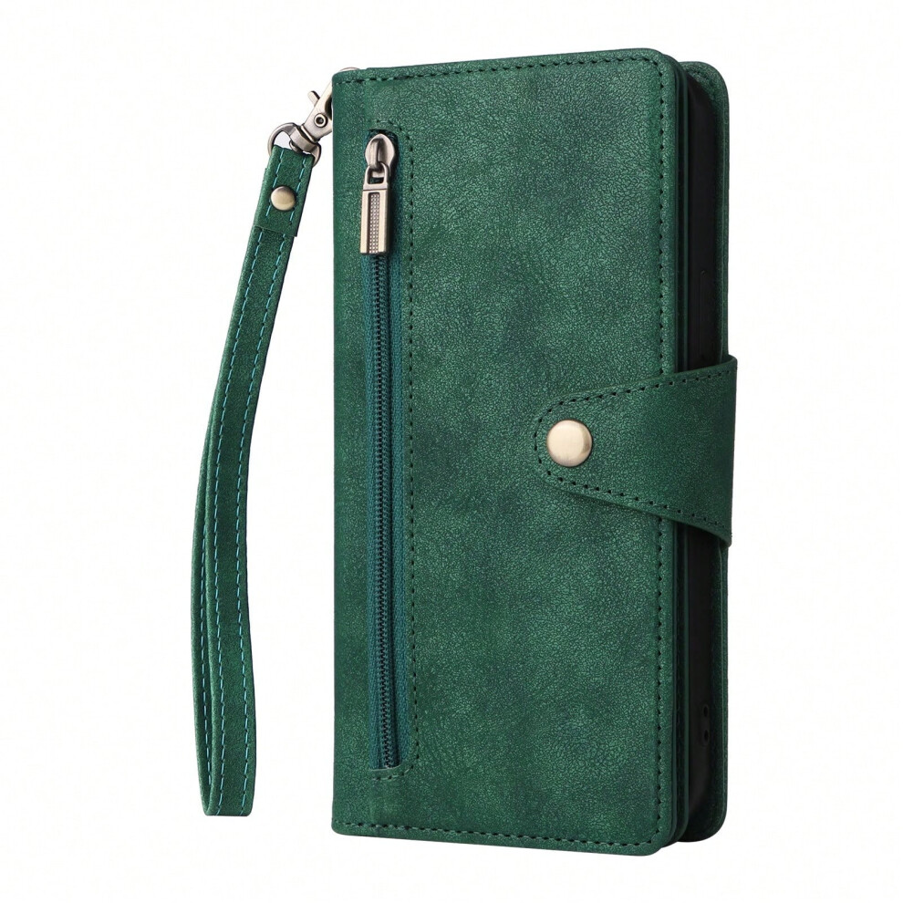 (green, Samsung A24) Flip Leather Phone Case for Samsung Galaxy Z Fold 5 4 S24 Plus S23 Ultra S22 S21 S20 FE iPhone 15 14 Plus 13 12 Pro Max Zipper Wa