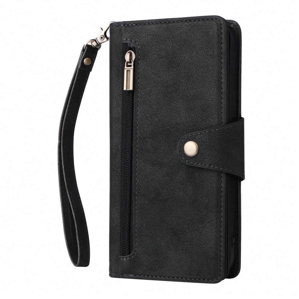 (black, Samsung A24) Flip Leather Phone Case for Samsung Galaxy Z Fold 5 4 S24 Plus S23 Ultra S22 S21 S20 FE iPhone 15 14 Plus 13 12 Pro Max Zipper Wa