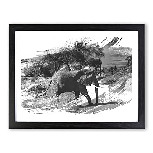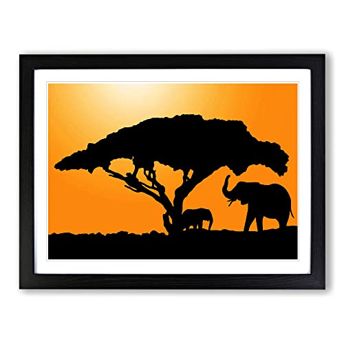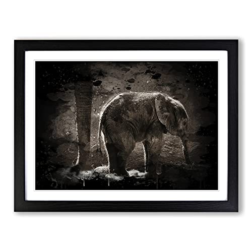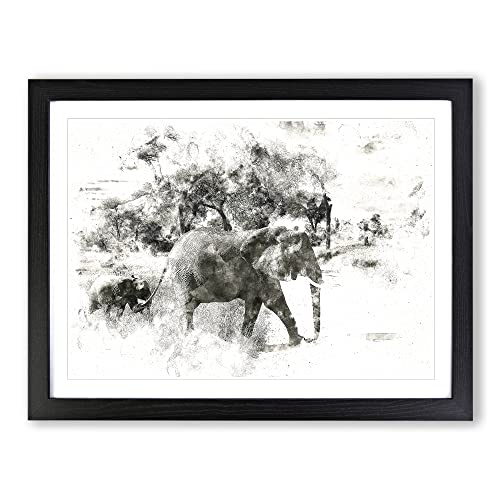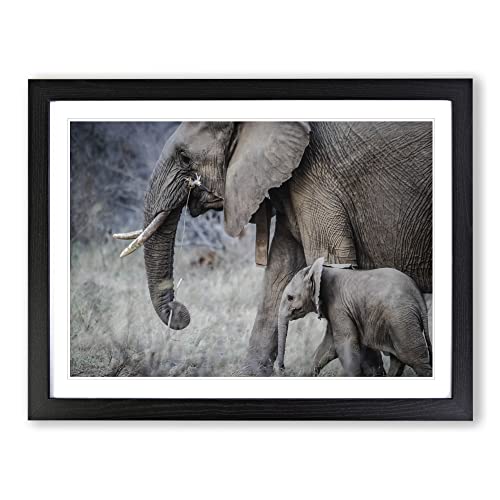 Mother and Baby Elephant No.1 Modern FC Framed Wall Art Print, Ready to Hang Picture for Living Room Bedroom Home Office Décor, Black A3 (46 x 34 cm)