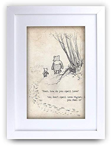 HWC Trading FR Winnie the Pooh Spell Feel Love A3 Framed Printed Quote Nursery Print Baby Shower Room Gifts New Born Bedroom Gift Print Photo Picture Frame Display