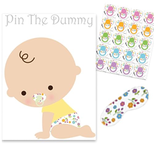 Pin The Dummy On the Baby Game 35 Players Baby Shower Game Blindfold Mask Stickers & A3 Poster
