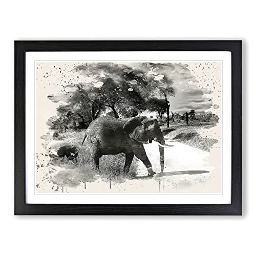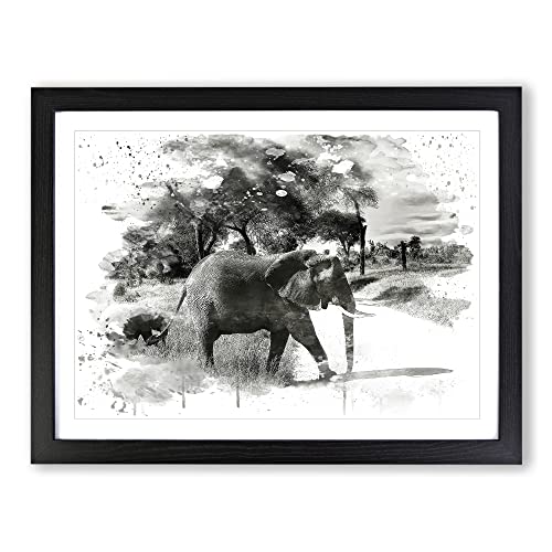 Mother & Baby Elephant Strolling Watercolour Modern Framed Wall Art Print, Ready to Hang Picture for Living Room Bedroom Home Office Décor, Black A3 (46 x 34 cm)