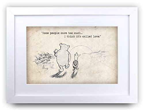 HWC Trading Winnie the Pooh Care to Much A3 Framed Printed Quote Nursery Print Baby Shower Room Gifts New Born Bedroom Gift Print Photo Picture Display