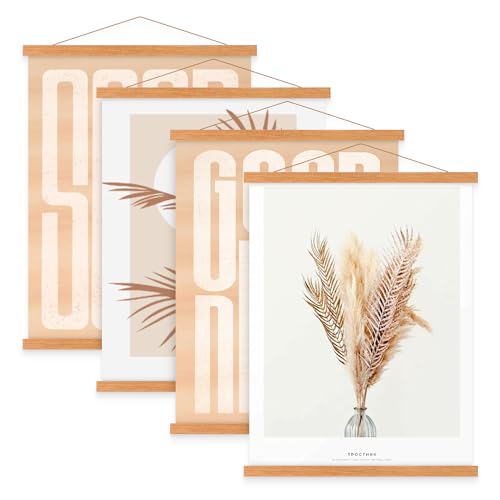 Benjia 4 Pack A3 Poster Frame Frames, Magnetic Light Wood Wooden Poster Hangers Hanger Hanging Kit for Canvas Artwork Art Print (30cm / 11.8", Teak, 4 Packs)