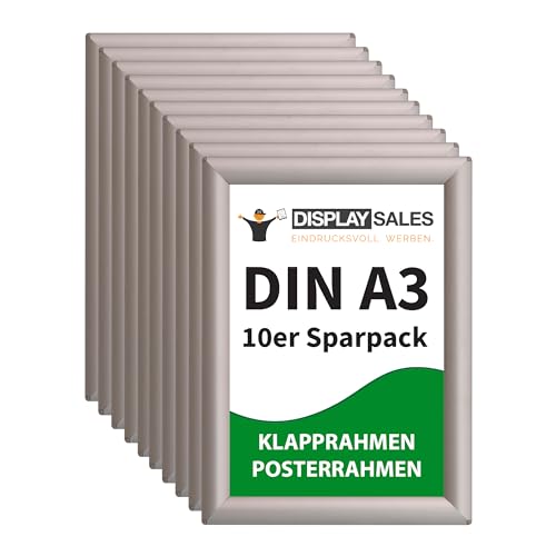 DISPLAY SALES A3 Snap Frames Pack of 10 pieces | A3 Clip Frame | 25 mm Profile | Poster Frame in silver | Poster Frame I Snap Frames I Picture Frames | Clip picture frames