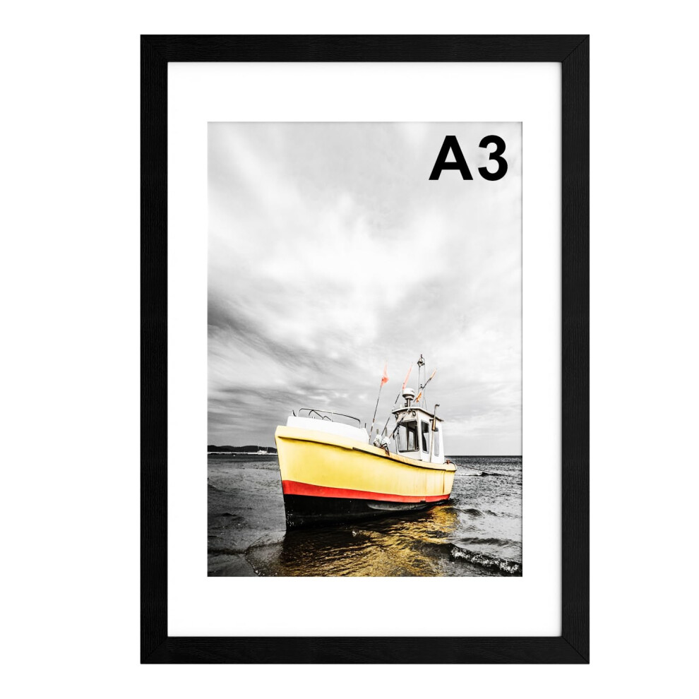 A3 Picture Frames with A4 Mount, Wooden 29.7 x 42 cm Featuring Black