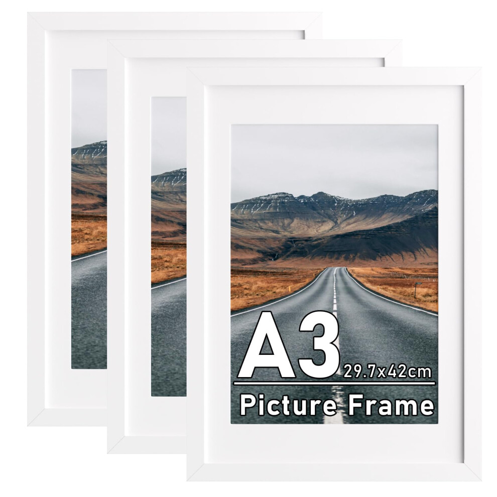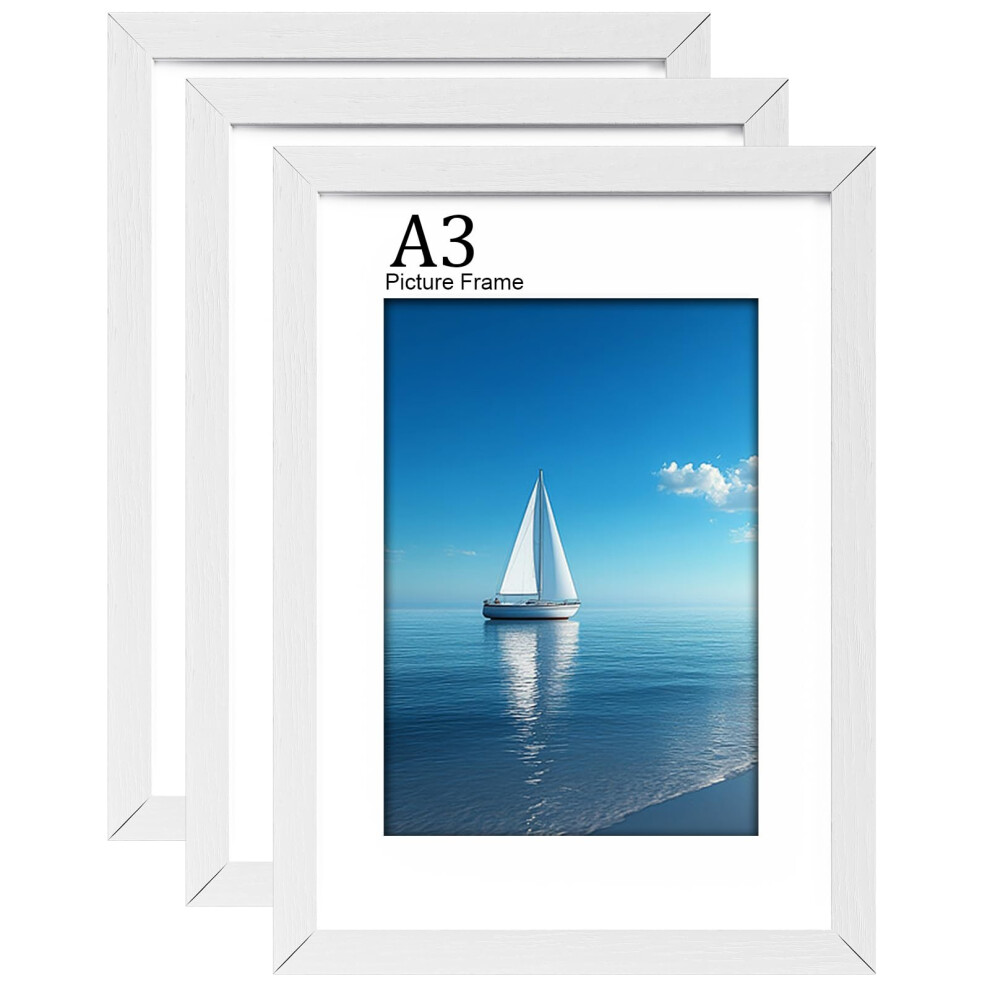 A3 Picture Frame with A4 Mount, 3 Pack White A3 Poster Frames, 29.7x42cm Photo Frames with Safe Perspex Front, Wall Mounting
