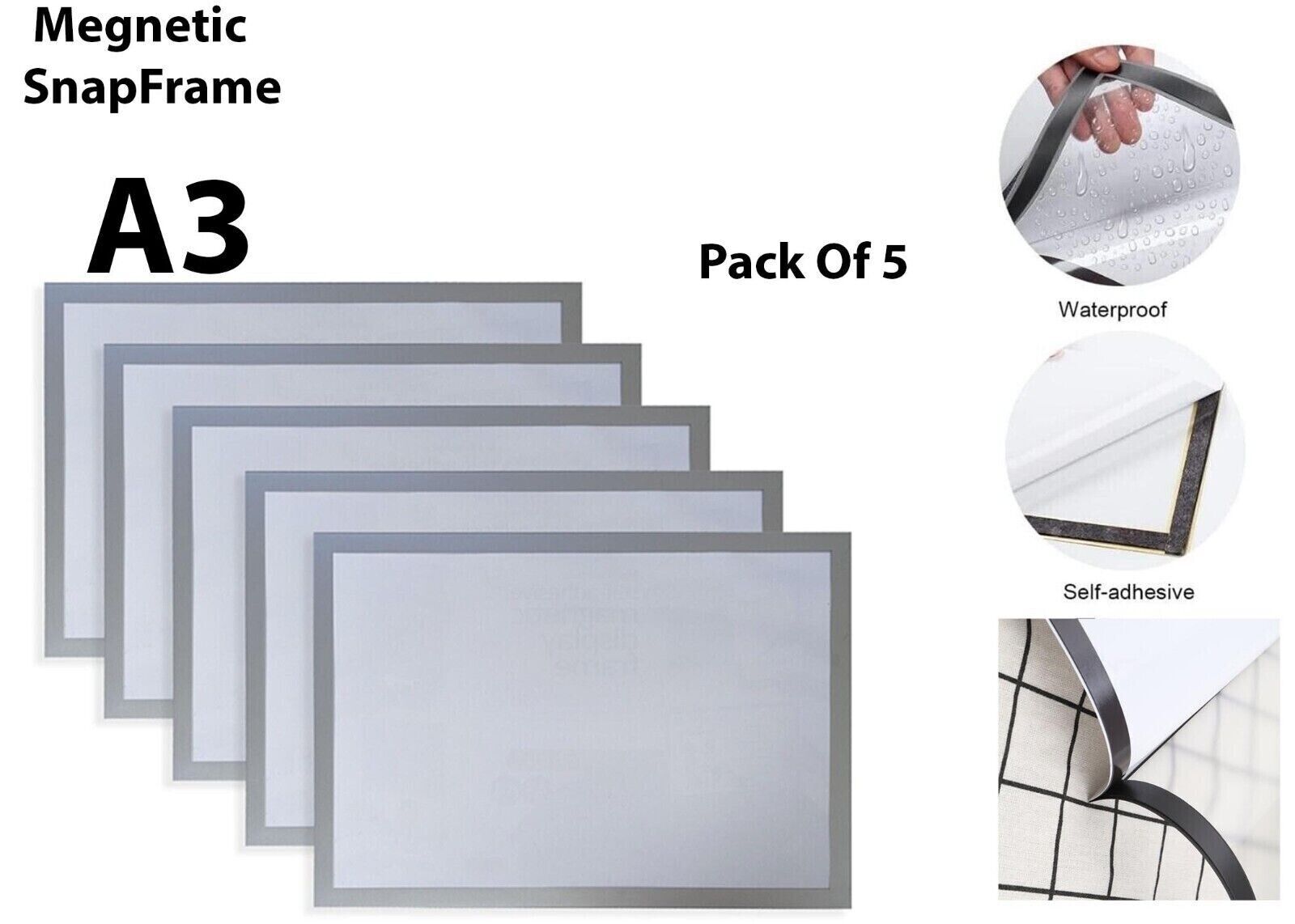 5 x A3 Magnetic Display Frames Self Adhesive Restaurant Picture Poster Holder