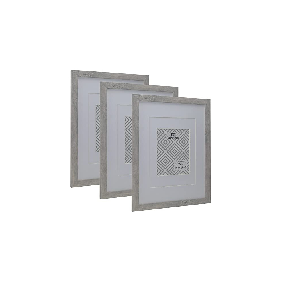 A3 Smoke Grey Wood Photo Frame set of 3,with double mounts for A4 or 6x8" photo,A3 Picture frames 3 Pack With Perspex Front for Wall Display