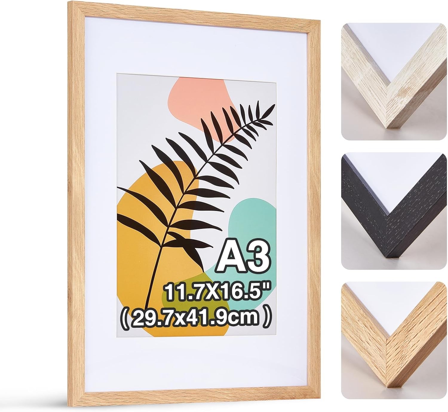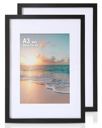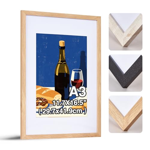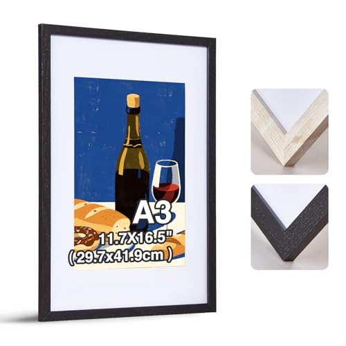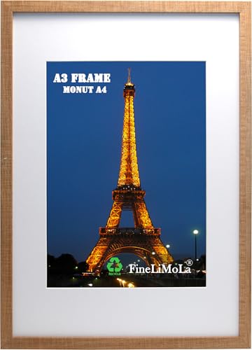 FineLiMoLa A3 Wooden Photo Frame with Acid Free A4 Mount, A3 Picture Frames, A3 Wooden Poster Frame, A4 Document Frames