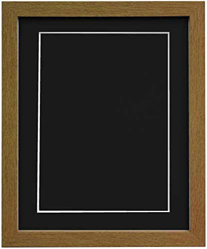 FRAMES BY POST 25mm wide H7 Oak Picture Photo Frame with Black Mount and Backing Board 20"x16" for Pic Size A3 (Plastic Glass)