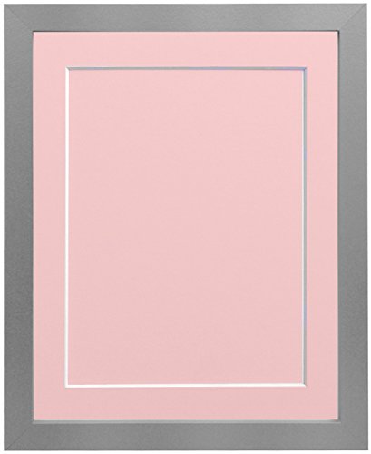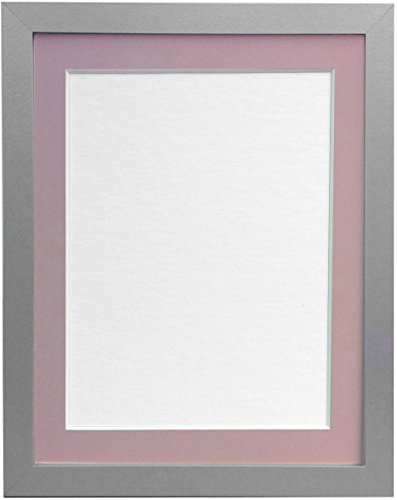 FRAMES BY POST 25mm wide H7 Silver Picture Photo Frame with Pink Mount and Backing Board 20"x16" for Pic Size A3 (Plastic Glass)