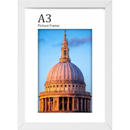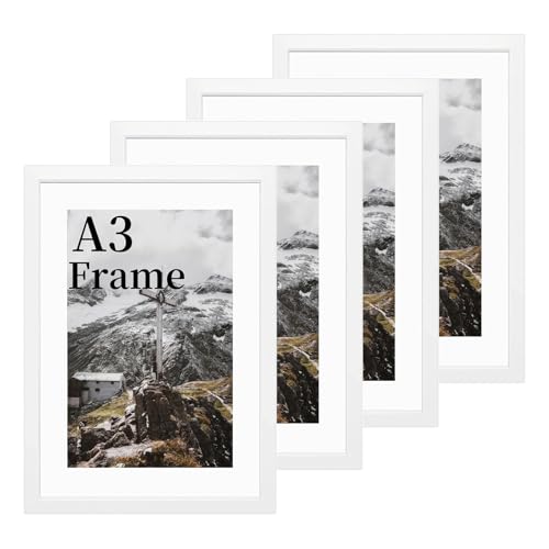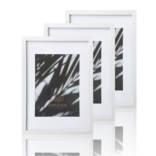 VUVUZULA A3 Frame White Photo Frame A3 Picture Frames A3 White Frame with Mount for A4 Print Set of 3 with Perspex Glass