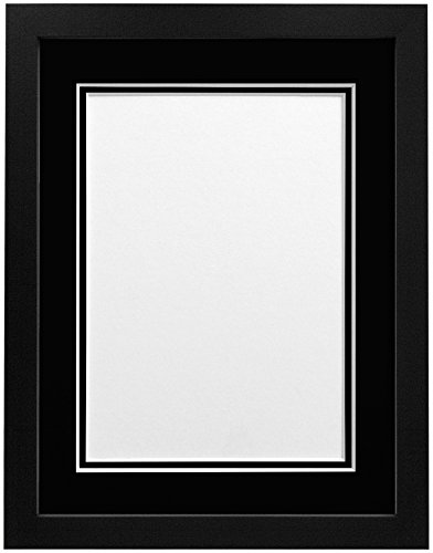 FRAMES BY POST H7 Black Picture Photo Frame With White and Black Double Mount 20"x16" for Pic Size A3 (Plastic Glass)