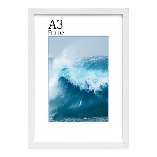 FamiPrts A3 Frame, Wooden A3 Picture Frames, Versatile White Frame, Dual Orientation (Landscape/Portrait), Includes Wall Hooks - Wall Mount for Home, Office, Gallery