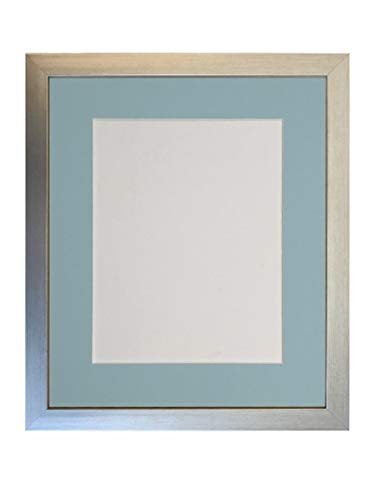 FRAMES BY POST 0.75 Inch Silver Picture Photo Frame with Blue Mount A3 Image Size A4 Plastic Glass