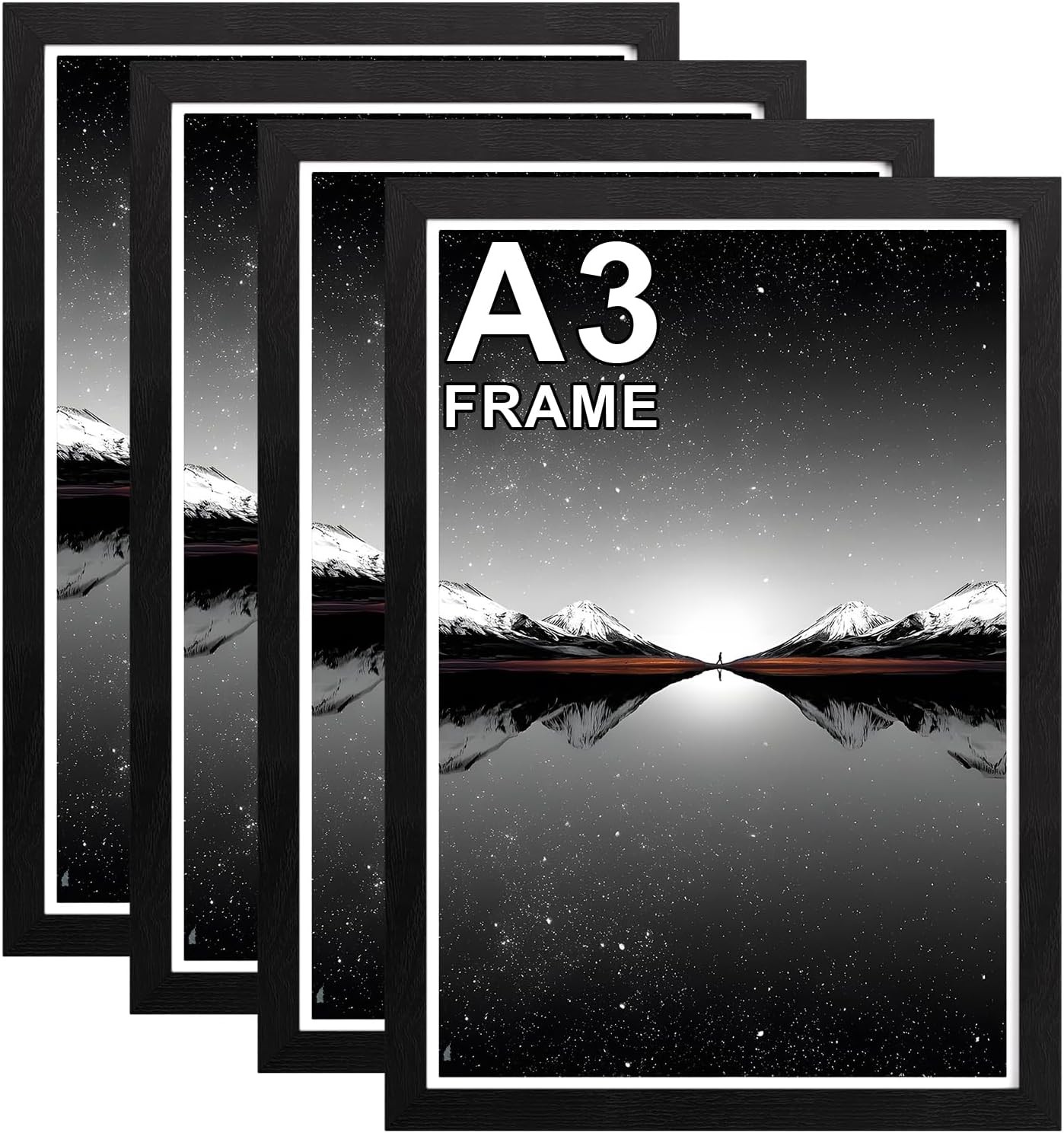 A3 Picture Frames, Pack of 4 Poster Frames for Print, Black (29.7x42cm)