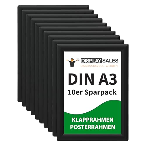 DISPLAY SALES A3 Snap Frames Pack of 10 pieces | A3 Clip Frame | 25 mm Profile | Poster Frame in black | Poster Frame I Snap Frames A3 I Picture Frames