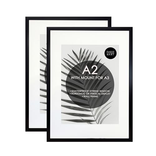 pf+a REAL GLASS 2 Pack A2 For A3 Picture Frames - A3 Black Frames With Mount Set of 2 / 42x59.4cm Frames For Posters, Photos, Artwork - Portait & Landscape Display