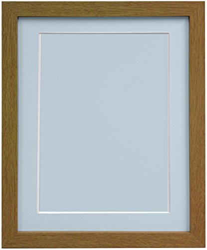 FRAMES BY POST 25mm wide H7 Oak Picture Photo Frame with Light Blue Grey Mount and Backing Board A2 for Pic Size A3 (Plastic Glass)