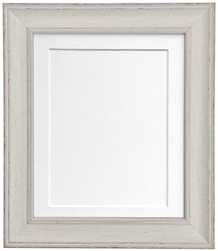 FRAMES BY POST Scandi Distressed Pale Grey Picture Photo frame with White Mount and Backing Board 20 x 16 inch For Image Size A3