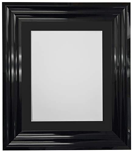 FRAMES BY POST Firenza High Gloss Black Picture Photo Frame Plastic Glass with BlackMount A3 for Image Size A4