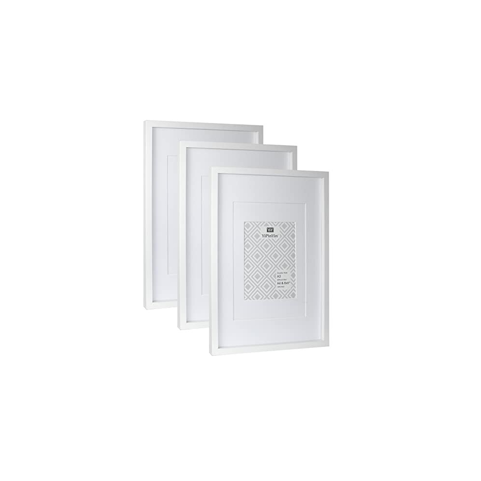 White A3 Boxed Picture Frames Set of 3 with Double Mounts for A4 & 6x8 photo, A4 boxed photo frames for 3pack, White A3 wooden Poster Frame with Mount