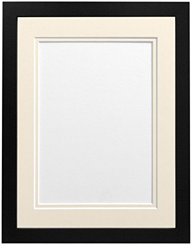 FRAMES BY POST H7 Black Picture Photo Frame With Ivory Double Mount A2 for Pic Size A3 (Plastic Glass)