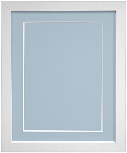 FRAMES BY POST 25mm wide H7 White Picture Photo Frame with Light Blue Grey Backing Board A3
