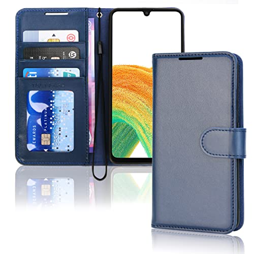 TECHGEAR Galaxy A33 5G Leather Wallet Case, Flip Protective Case Cover with Wallet Card Holder, Stand and Wrist Strap - Blue PU Leather with Magnetic Closure Designed For Samsung A33 5G