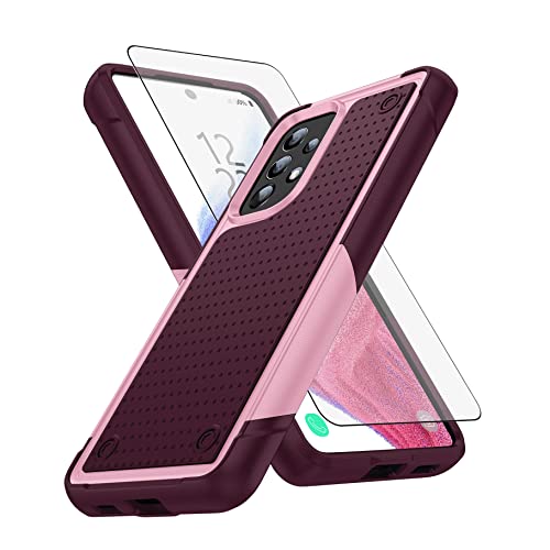 Asuwish Phone Case for Samsung Galaxy A33 5G with Tempered Glass Screen Protector Cover and Cell Accessories Protective Slim Rugged Dual Layer Gaxaly A 33 G5 Galaxies 33A A336U S33 Women Men Rose+Red