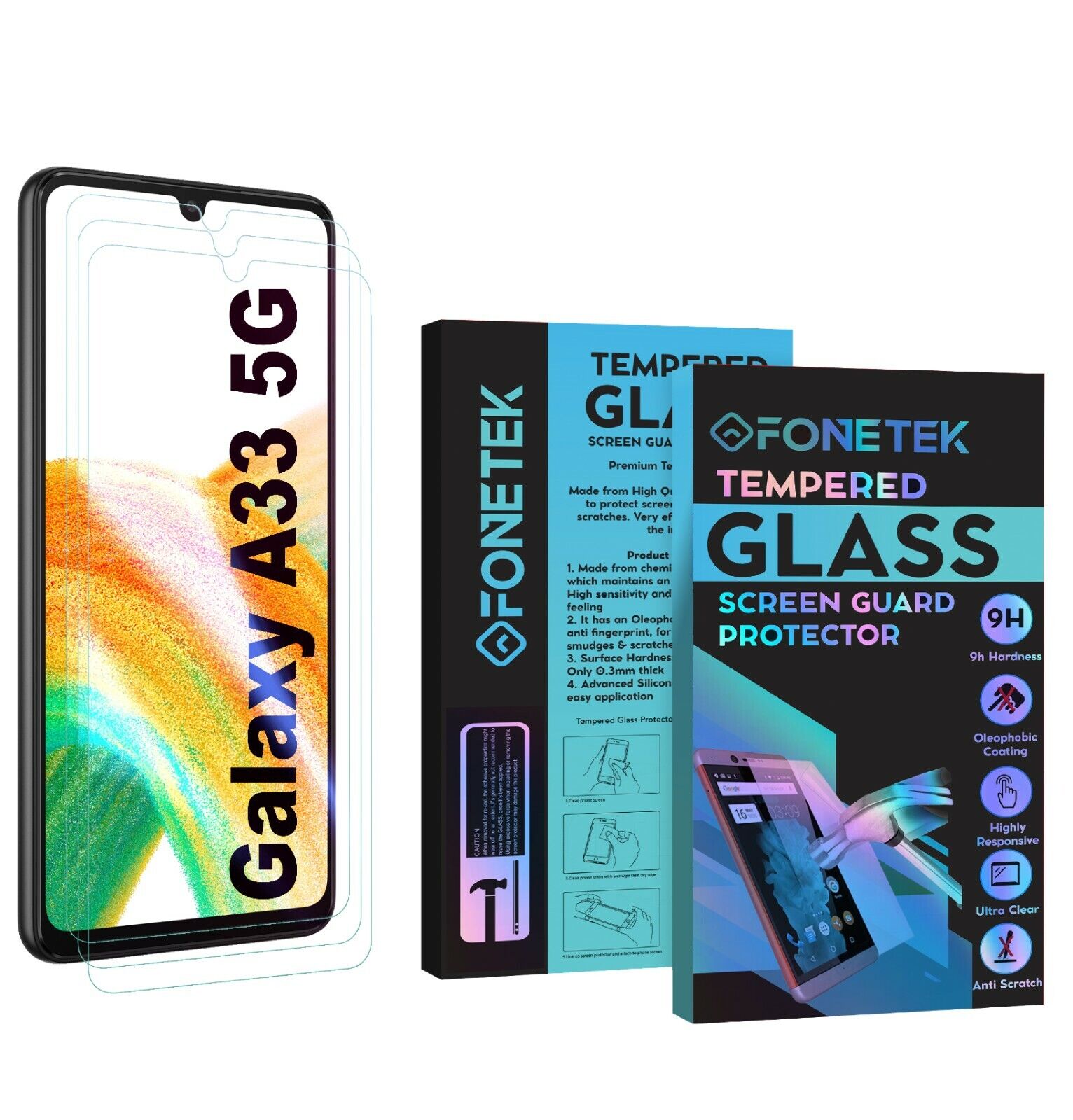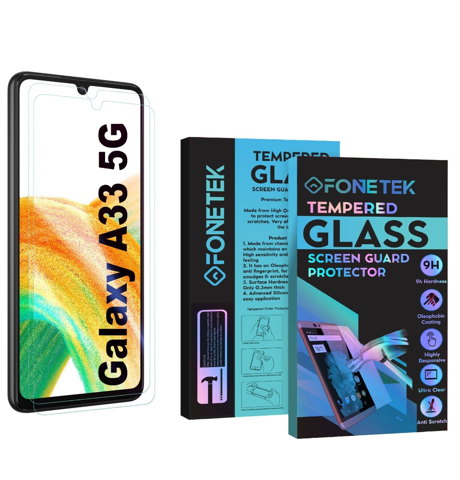 2 in 1 Glass foil Display Protector Cover for Samsung Galaxy A33 5G Cover