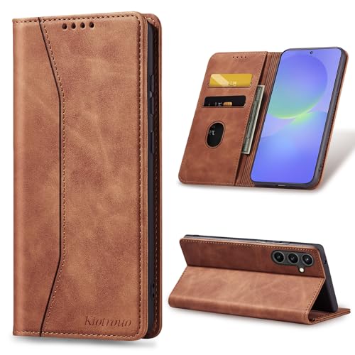 KIOTROUO Case for Samsung Galaxy A36 5G Leather Wallet Case with Card Holder, Kickstand, Magnetic Closure, PU Flip Shockproof Protective Phone Case Cover Compatible with Samsung A36, Brown